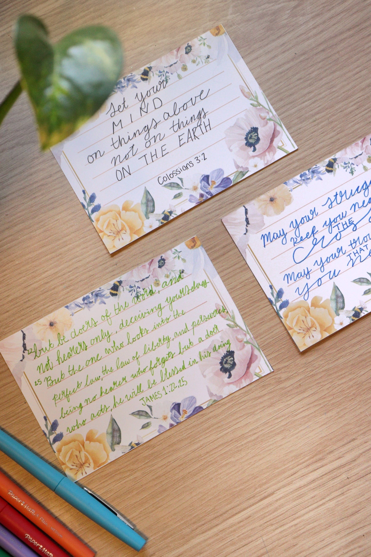 Need help remembering quotes? Or do you love decorating with applicable Bible verses? These floral Memory Cards are perfect for just that! Each one is printed and cut on heavy cardstock and provides a beautiful glide with marker or pen without bleeding through the paper. 5 cards are included in each pack